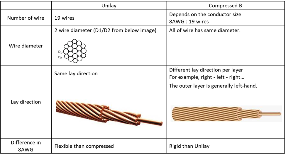 8AWG conductors are the only LS Cable products that use combination unilay-strand.
